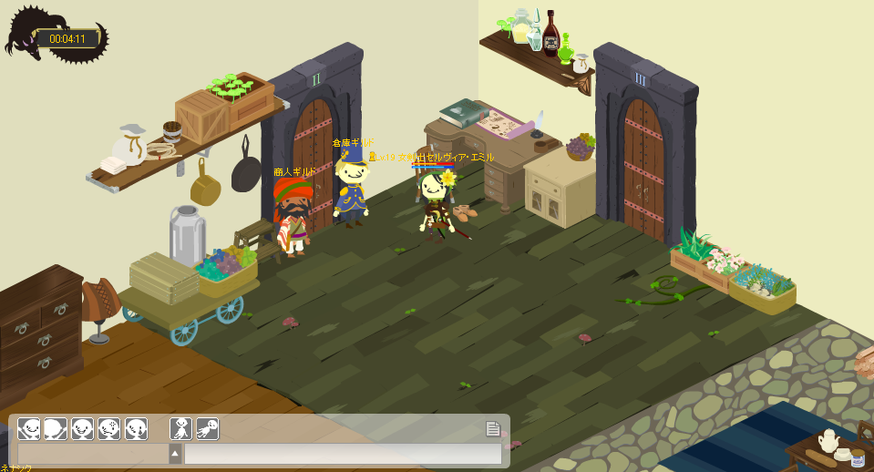 左下的按鈕分別是 寵物→丟骰子→組隊→回大廳→地圖→好友名單→道具